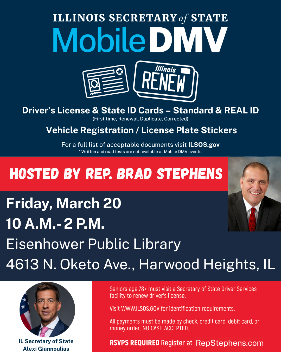 State Representative Brad Stephens is hosting a mobile DMV event for residents in his 20th District in partnership with the Illinois Secretary of State’s Office. The March 20th event will…